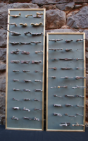 Die Keildreher werden in verschiedenen Materialausführungen angeboten: Sie finden hier Messinggriffe, schmiedeeiserne Griffe, gusseiserne Griffe, gusseiserne Griffe mit Horneinlage oder auch reine Horngriffe. Der gewünschten Stilepoche entsprechend erhalten Sie hier sowohl einfach gehaltene Keildreher als auch raffiniert ornamentierte Aufreibeoliven.