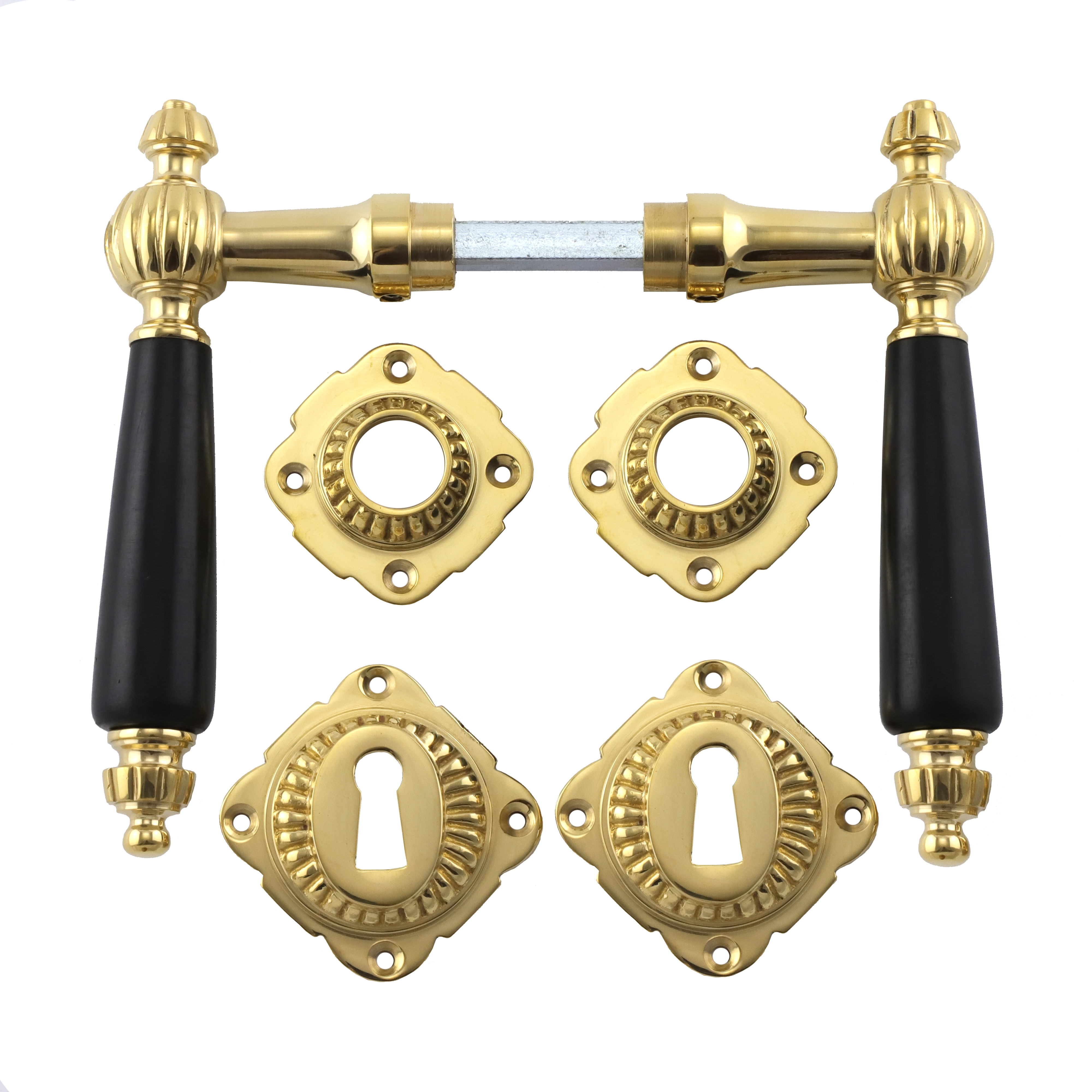 https://jcb-beschlaege.de/Tuergriffe-mit-Rosetten-Messing-poliert-Ebenholz-Gruenderzeit/321.0241.35