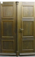 Antike Türen - Haustür 2-flg. aus der Gründerzeit mit sechs Türfüllungen und einer Schlagleiste mit Kapitell.