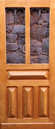 Antike Türen - Einflügel-Gründerzeit-Haustür aus Fichte mit zwei schmiedeeisernen Gittern. Diese Tür stammt aus einem Haus in Weinheim.